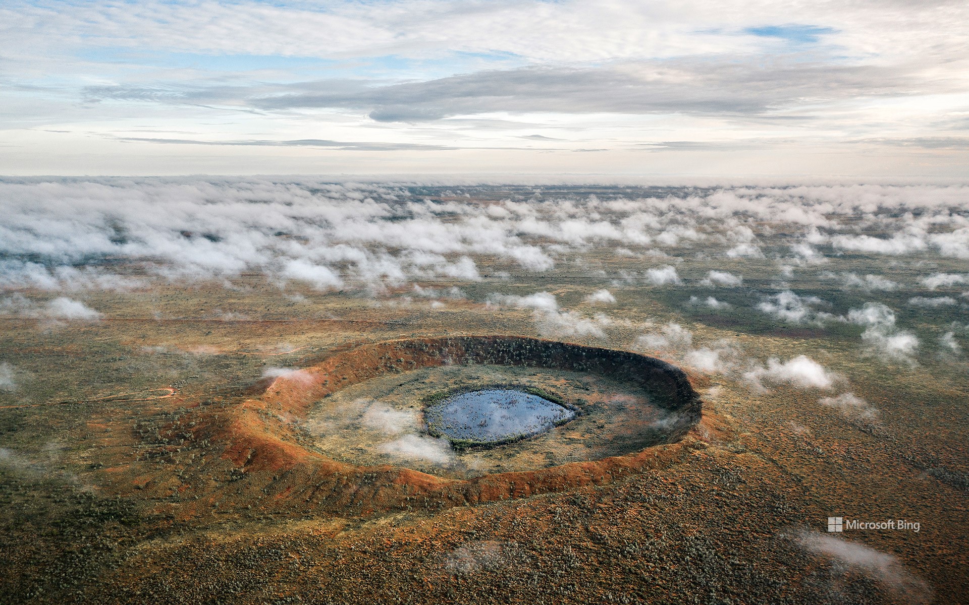 Il cratere Wolfe Creek, che possiamo osservare nella foto, si trova nell’Australia Occidentale e si formò per l’impatto di un meteorite che si stima avesse una massa di oltre 14.000 tonnellate. Ha un diametro di 875 metri ed è situato nel Wolfe Creek Meteorite Crater National Park, una remota area protetta. Le distese erbose e le pianure circostanti mettono in risalto il bordo del cratere. Oggi, i visitatori possono camminare lungo la sua cresta e scoprire la sua importanza, sia scientifica che culturale, per le comunità indigene locali.