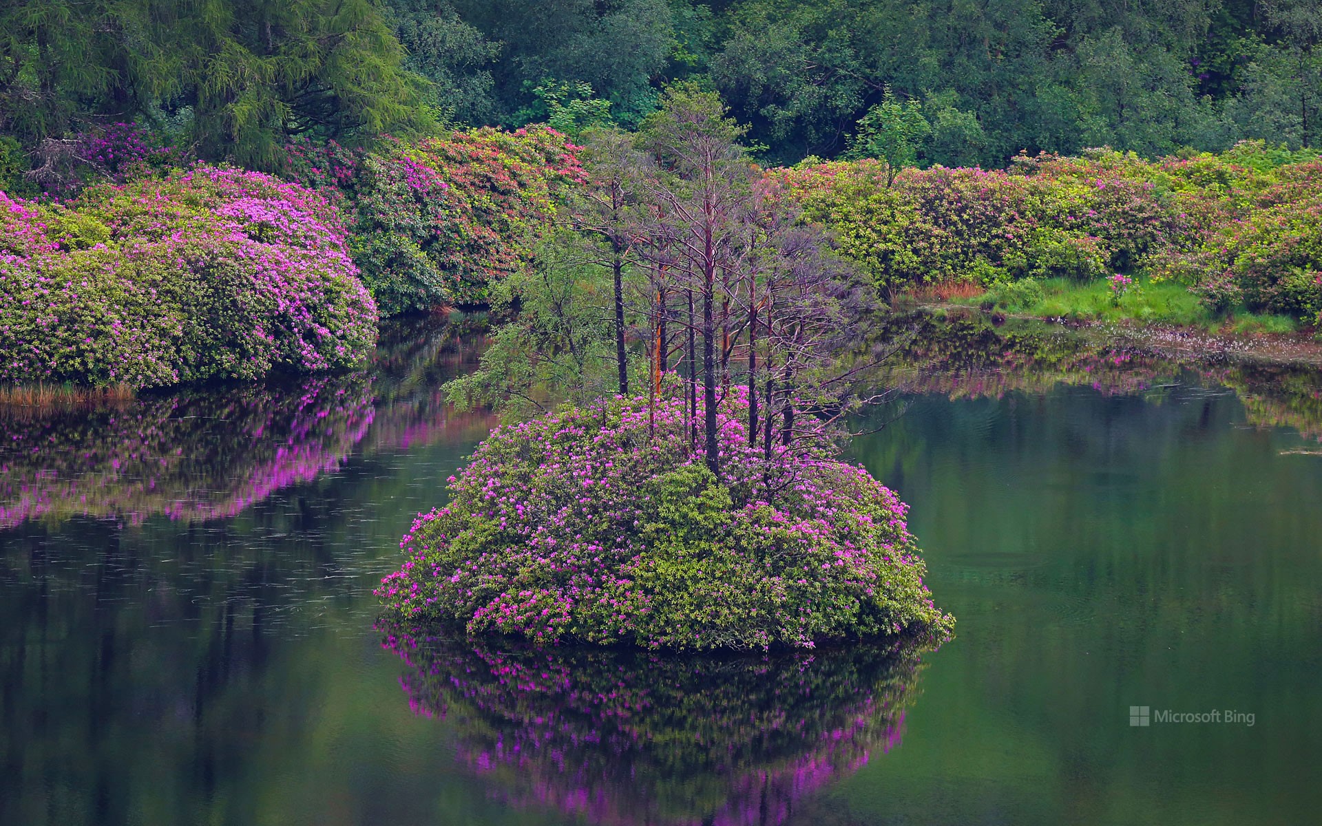 格伦·埃蒂夫盛开着石南花的小湖,苏格兰 (© Oliver Hellowell/Minden Pictures)