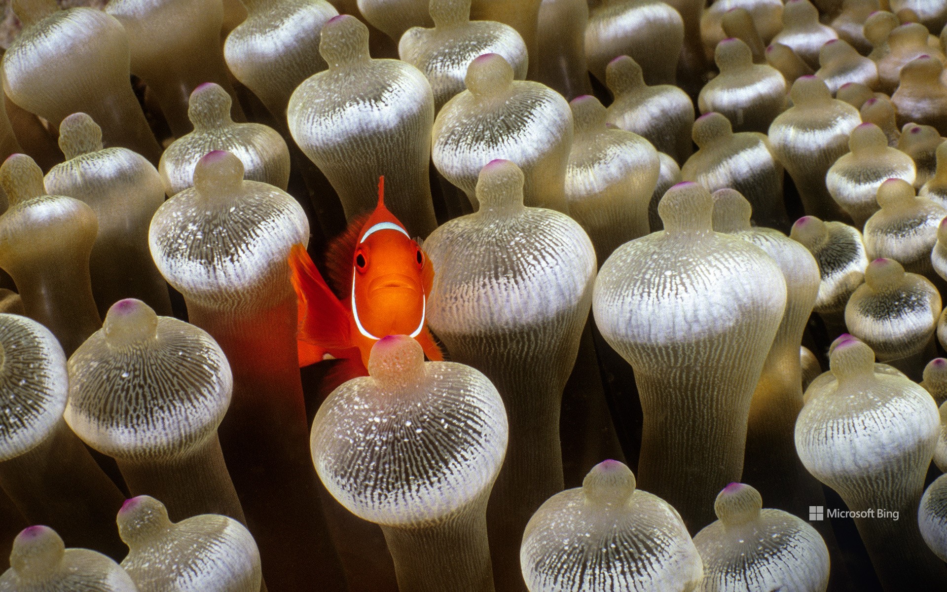 这种海葵鱼最亲密的共生伙伴是气泡尖海葵,正如今日图片中所示。该海葵种类形态多变,其外观会因个体年龄、水深,乃至是否有海葵鱼栖居而有所不同。它为小丑鱼提供了绝佳的掩护与保护,而小丑鱼则以驱赶捕食者与清除碎屑的方式回馈海葵。这种互惠共生的关系,使两者在珊瑚礁生态系统中建立起紧密且稳定的依存纽带。